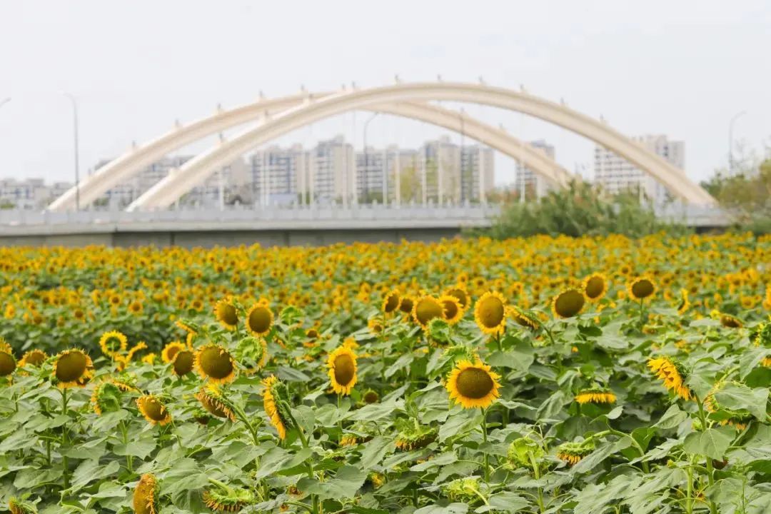 客廳傍湖而建,它就是鳳依湖。湖邊是放松與休閑的天堂,趁著秋日上午陽光正好、微風(fēng)不涼,沿湖邊漫步,東西南北四個特色功能區(qū)——國際藝術(shù)之原、和諧靜思之秋、木槿花開之海、繽紛未來之谷各具風(fēng)情,岸邊步道、橋梁猶如一條綢帶蜿蜒貫通起各個區(qū)域,把秋色的湖邊裝進(jìn)“籃子”。秋天是屬于金黃色的,整片向日葵花海燦爛開放,像油畫一般復(fù)古浪漫,趕快來打卡拍照吧!