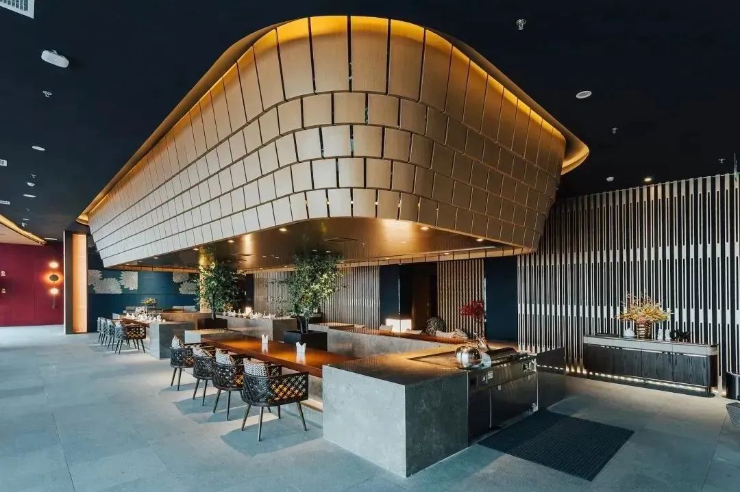 中韓文化客廳三樓主題餐廳匯聚了全市首家高端沉浸式日韓鐵板燒和港式茶餐廳,日式的深遠(yuǎn)幽靜與港式的市井繁華在這里交織呼應(yīng)。庭院風(fēng)格的迎客大廳,運用樹、木、石等天然材質(zhì),以現(xiàn)代設(shè)計手法結(jié)合傳統(tǒng)的庭院式布局,將和式的纖細(xì)與中式的優(yōu)雅完美融合,摒棄一切多余的裝飾,演繹簡素質(zhì)樸的自然之美。客人由此漫步入主題餐廳,如品嘗正餐前的開胃小菜,開啟難忘的美食體驗之旅。