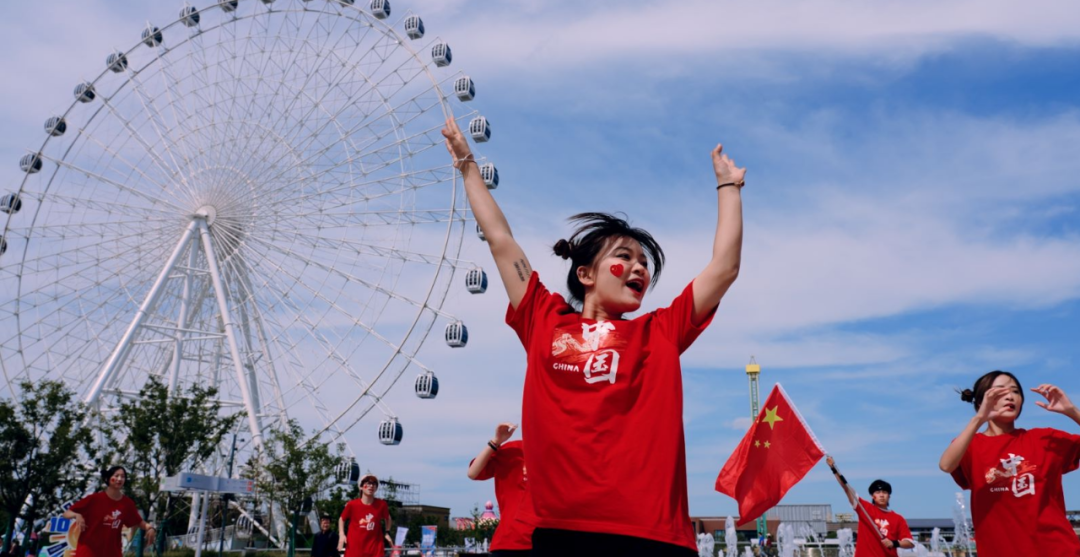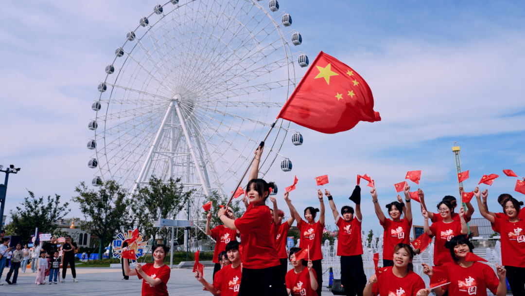 “我愛你,中國……”10月1日當天,走在KK-PARK國際街區(qū),當熟悉的旋律響起,一抹抹鮮艷的“中國紅”從人群里匯聚,大家輕舞著五星紅旗,深情合唱告白祖國。