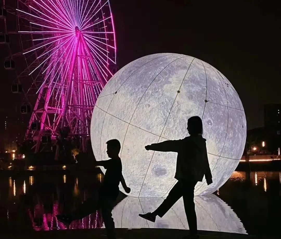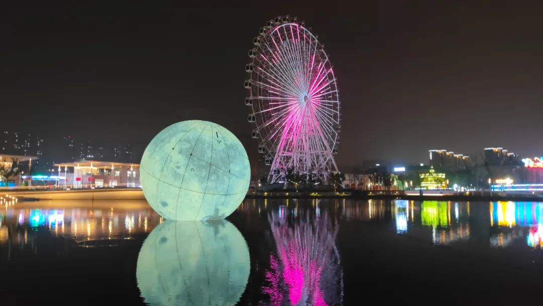 夜幕降臨后,KK-PARK中心湖的“月亮”格外惹人注目。9月28日至10月6日期間,KK-PARK將一只會發(fā)光的“超級月亮”置于湖中。在湖邊聽歌漫步,和家人朋友拍照打卡,別有一番韻味。