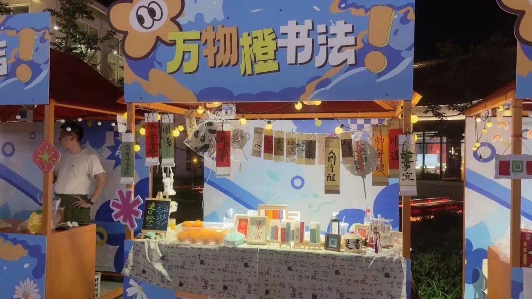 以手造物,以物寄情,讓腦袋里的山川星河來到你手中吧!暑過橙汁潤,風來翰墨香,橙汁與書法的邂逅碰撞出別樣的東方美學,9號攤位“萬物橙書法”人頭攢動,大家紛紛打卡拍照。該攤位將書法藝術融入飾品中去,鑰匙扣、扇子、杯墊、書簽、卷軸、相框……隸書的沉穩(wěn)豪邁、楷書的端莊大氣、草書的豪邁奔放躍然紙上,植入一件件書法文創(chuàng)品中,傳遞著傳統(tǒng)文化的新式美學和文化自信。