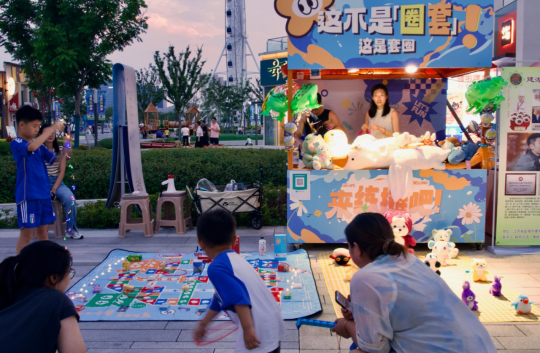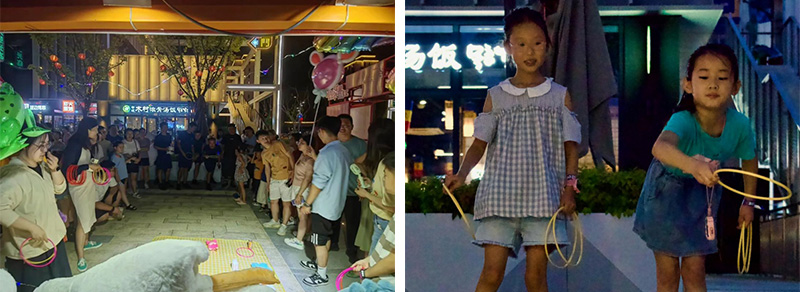 “差一點點就套中了啊!”在1號“這不是圈套(這是套圈)”攤位旁,小朋友們一邊“著急”,一邊分析戰(zhàn)術,比劃出圈角度、方向、力度,這讓攤位前傳來陣陣歡笑。套圈攤位前擺放著玩偶娃娃、蛙仔氣球、玩具盲盒、奧特曼卡牌、美味零食等豐富多彩的禮品,套圈是很多人童年的一大美好回憶,也是全齡段人群比較愛玩的游戲,喜歡的東西近在咫尺,一個圈圈瞄準扔過去,似乎馬上就可以收入囊中,那種投圈圈時的忐忑心情和想贏的強烈欲望交織在一起,運氣好投中了,發(fā)自內(nèi)心的成就感和輕松感讓人幸福到冒泡泡。