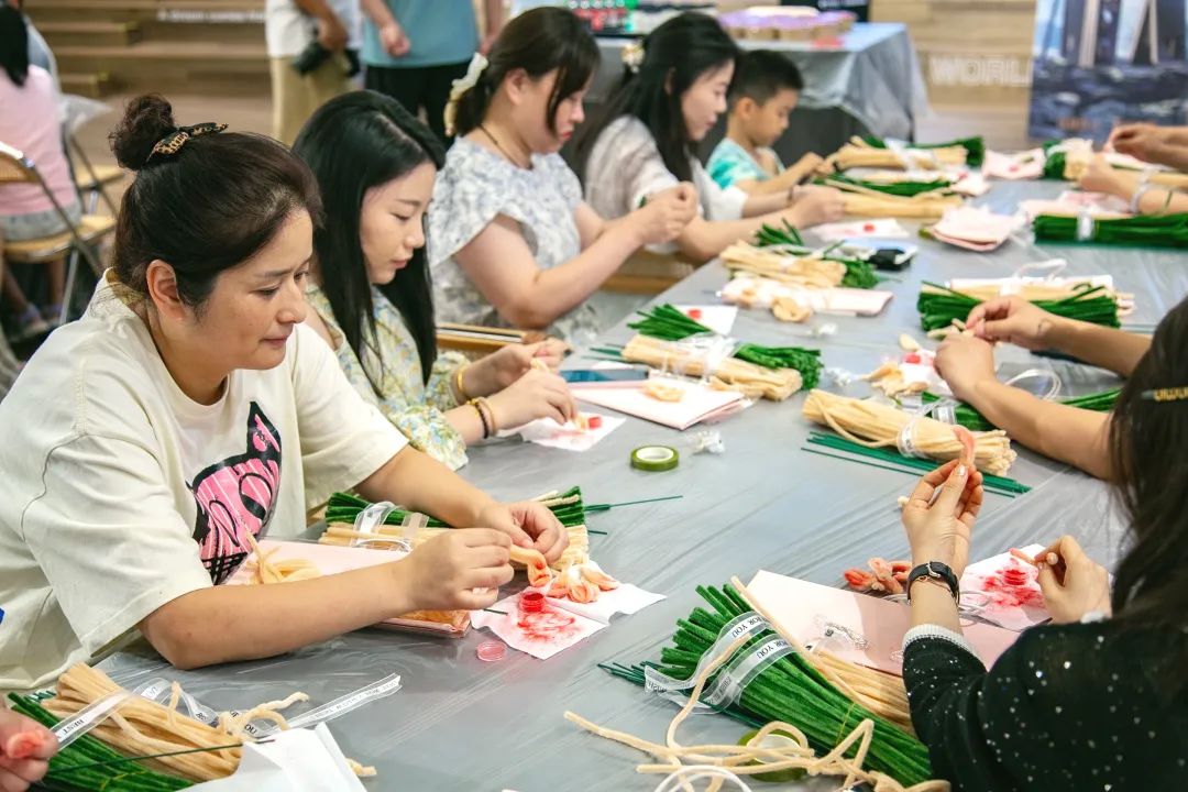 在老師的耐心演示下,大家一步步學(xué)習(xí)基礎(chǔ)制作方法,有條不紊地進(jìn)行剪、彎、扭、拼、繞一系列操作。不一會兒,一朵朵鮮艷欲滴的“花朵”在大家的手中“盛開”,現(xiàn)場氛圍溫馨浪漫。