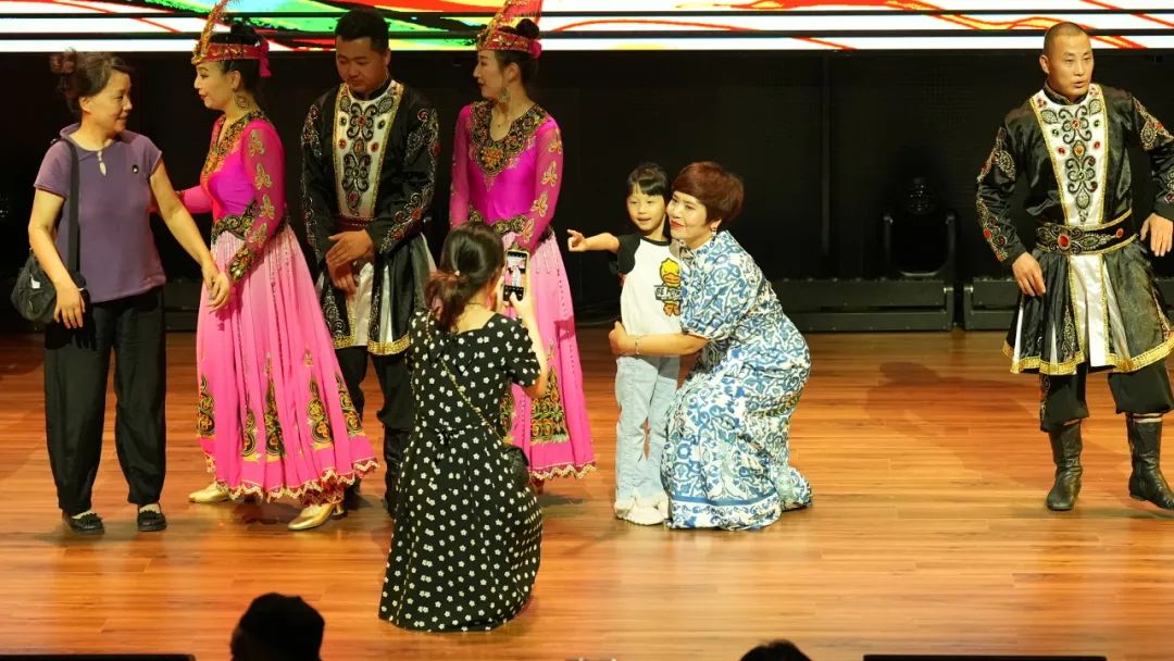 揚眉動目、晃頭移頸、拍掌彈指......新疆女子舞蹈《巧姑娘》舞姿優(yōu)美舒展,好似一只只輕快靈巧的蝴蝶,在舞臺上翩翩起舞;冬不拉是哈薩克族人心愛的樂器,一曲自彈自唱的《可麗木愛黛》讓大家仿佛置身草原上淙淙泉水旁,羊群歡騰、駿馬疾行,好不享受;國家級非物質(zhì)文化遺產(chǎn)錫伯民歌清唱著實給大家了一份驚喜,原生態(tài)歌曲《嗚呀拉依耶》氣勢磅礴如萬馬奔騰,令全場屏住呼吸聆聽;透過薩滿歌手深沉熱烈的腔音,不禁聯(lián)想到乾隆年間錫伯族人從白山黑水到伊犁河,越千山、涉萬水、扶老攜幼,橫穿漠北的“大西遷”,那份歷史使命下的堅韌執(zhí)著在民歌中回蕩。