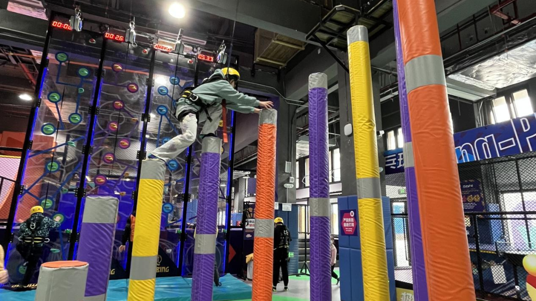這位少俠,穿戴好安全衣之后,你也可以在梅花樁上行走自如哦~