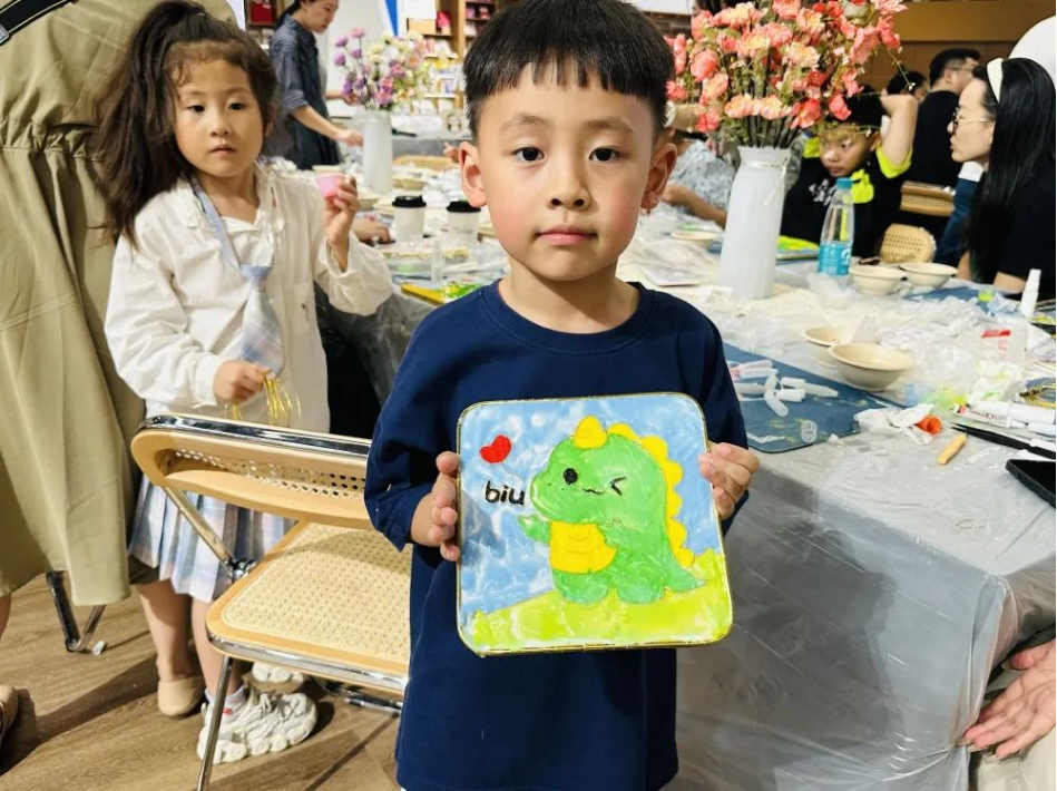掐絲琺瑯工藝是我國非物質(zhì)文化遺產(chǎn)之一,這是一種在金或銅胎上用金屬細絲掐出圖案,再填上顏色,經(jīng)焙燒、研磨等多道工序形成精美器皿的技藝?;顒又校诜沁z老師的指導和講解下,大家一邊了解掐絲琺瑯的歷史及工藝特點,一邊循序漸進地按照掐絲、點藍、風干等步驟制作自己的掐絲琺瑯創(chuàng)意作品。不僅大人們興趣盎然,活動也吸引了很多小朋友積極參與,現(xiàn)場氛圍歡快熱鬧。