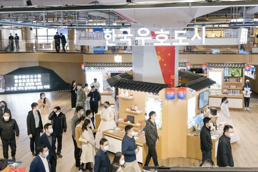 作為江蘇省對(duì)外交流基地的中韓文化客廳,是我區(qū)中韓文化交流的重要平臺(tái),也是全市首家集城市書(shū)房、文化交流、高端餐飲于一體的新型文化生活定制空間。客廳內(nèi)部共有三層,利用色彩搭配、元素融合營(yíng)造唯美、舒適的環(huán)境,展陳充分體現(xiàn)中韓文化特色,將文化的厚重感和豐富性轉(zhuǎn)化為文化品牌的閃光點(diǎn)。2022年,中韓文化客廳獲省級(jí)“最美公共文化空間”稱(chēng)號(hào)。