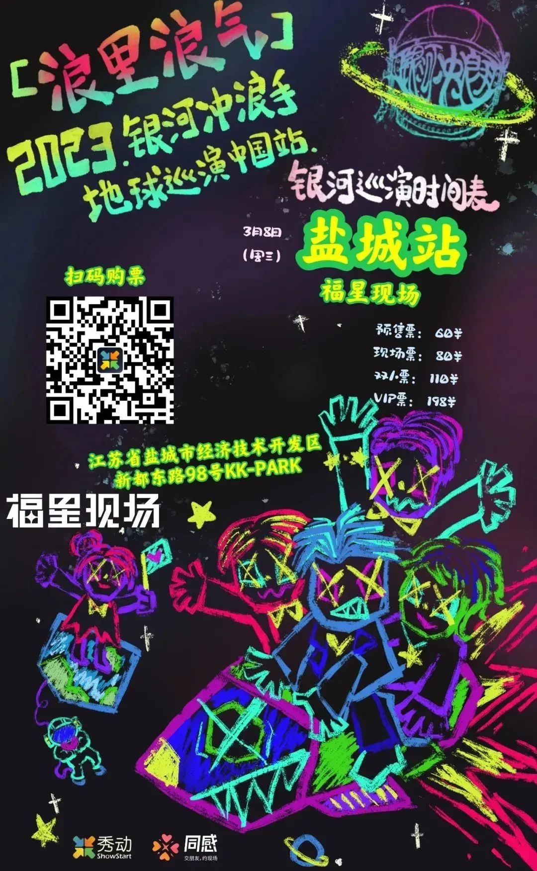 演出介紹:銀河沖浪?,2021年成立于北京。我們向往那個(gè)富有迷幻?彩的年代,憧憬著浩瀚的星空是否也有著?群和我們?樣做夢(mèng)的年輕人,他們?持彩?的霓虹燈,舞步踏過璀璨的星河,在愛與被愛之間從來不會(huì)猶豫不定。