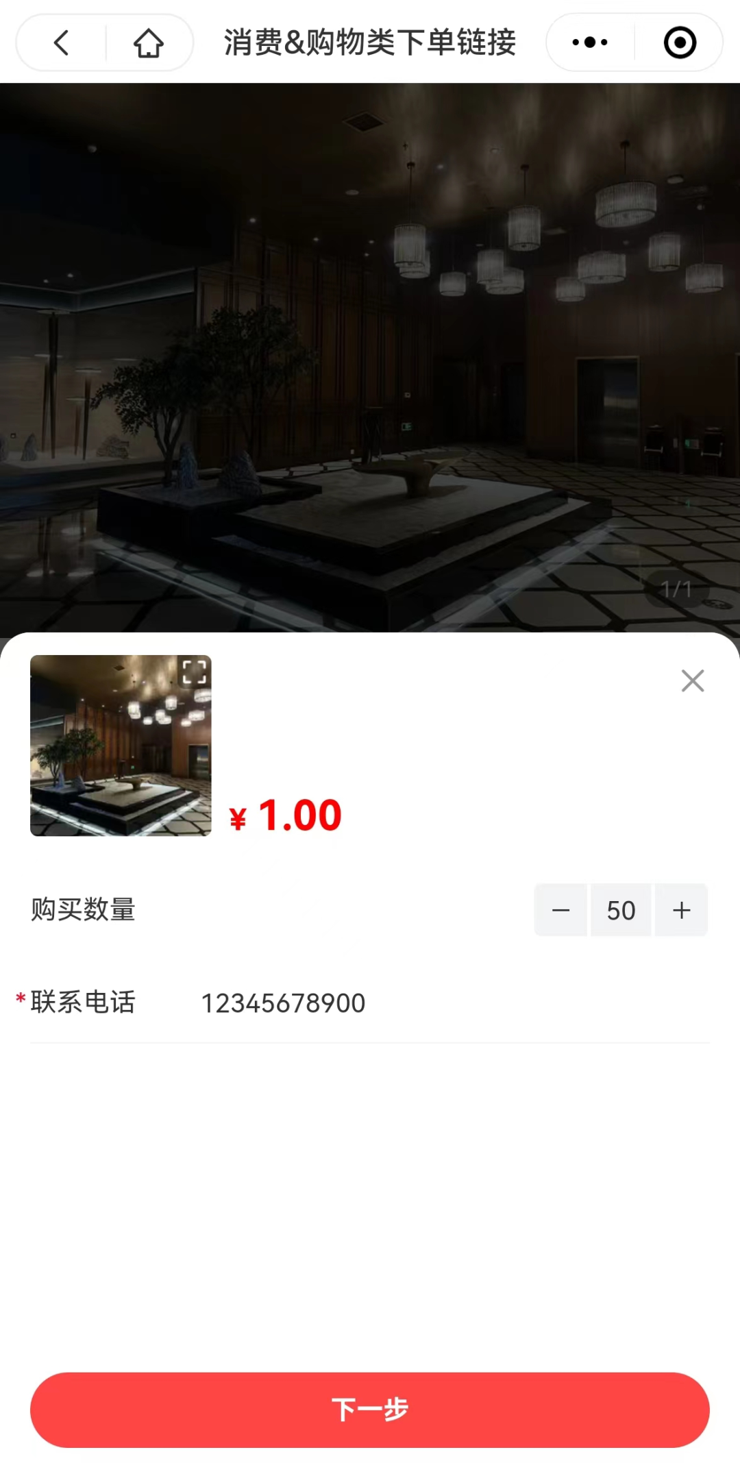 2、按照實際應付金額,修改“購買數(shù)量”并填寫手機號碼,點擊“下一步”。