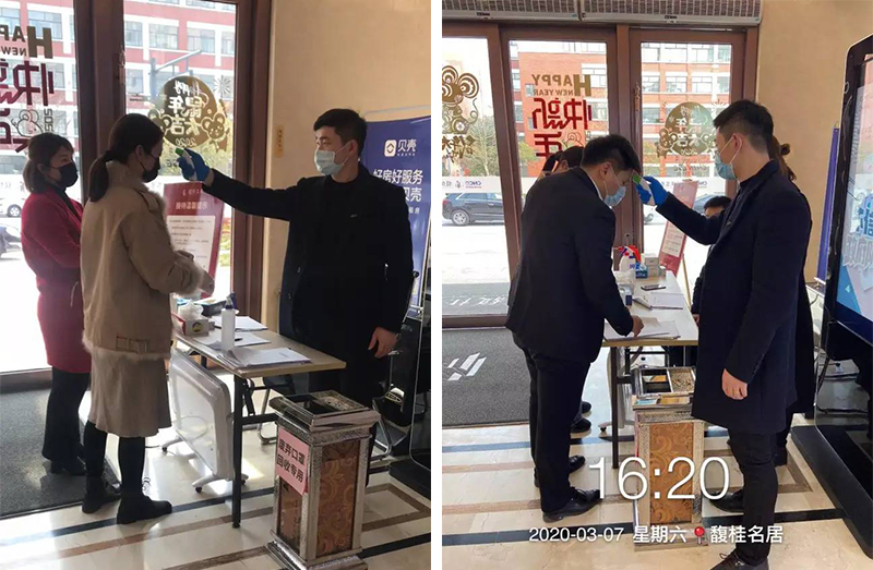 疫情防控小組每日售樓部消毒,來(lái)訪客戶量體溫登記,
