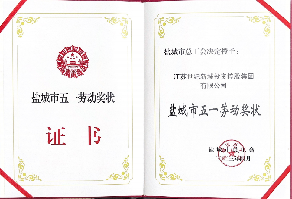 近日,鹽城市總工會印發(fā)《關(guān)于表彰2023年市五一勞動獎和市工人先鋒號的決定》,世紀(jì)新城集團(tuán)被授予:“鹽城市五一勞動獎狀”。