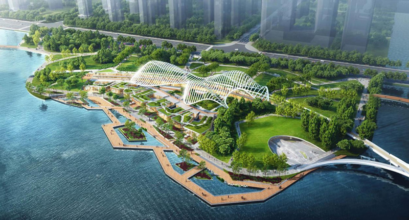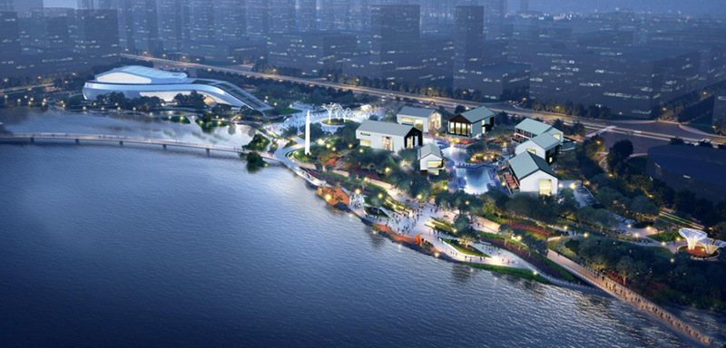 對(duì)接中韓文化客廳和周邊城市功能,分區(qū)以時(shí)尚現(xiàn)代、大氣開敞為主題格調(diào),突出文化、藝術(shù)、休閑等主題功能,主要建設(shè)為文化水岸、藝術(shù)廣場(chǎng)等。