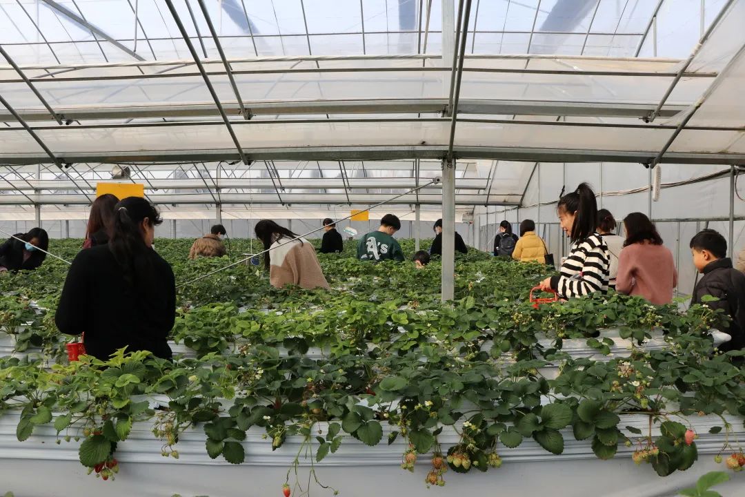 3月4日上午,大家統(tǒng)一乘坐大巴到達(dá)鹽都區(qū)仰徐草莓采摘園。一踏入草莓大棚,放眼望去,一壟壟翠綠的植株之間,色澤艷麗的草莓在綠葉中若隱若現(xiàn),綠紅交織,相映成輝。如此景象,女神們紛紛化身快樂(lè)的“小果農(nóng)”,手持小果籃,爭(zhēng)先恐后地穿梭于園內(nèi),與藏匿于綠葉下的草莓來(lái)一場(chǎng)美好的邂逅。