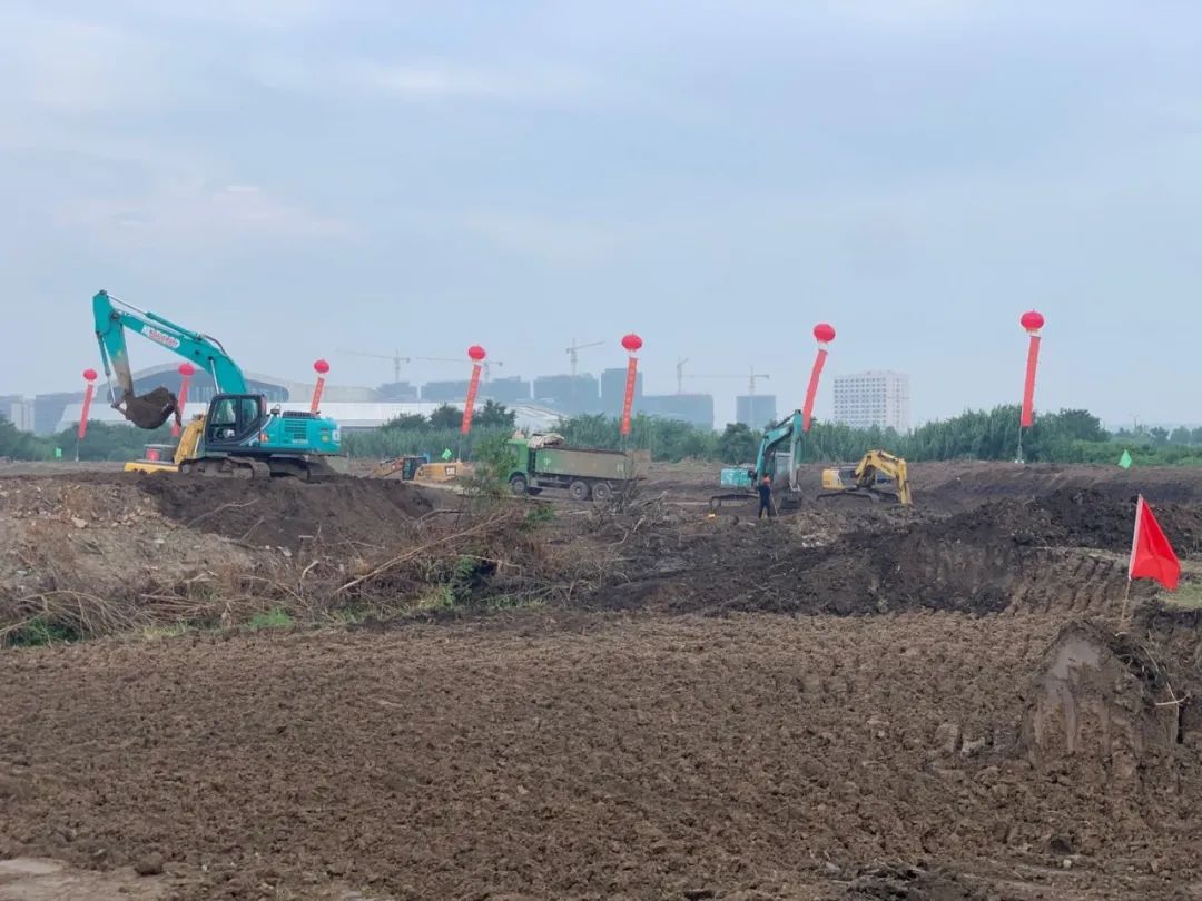 昨天,在中韓文化廣場(chǎng)中央水體開挖現(xiàn)場(chǎng),一臺(tái)臺(tái)挖掘機(jī)巨臂揮舞,一輛輛運(yùn)土車往來不息,一片繁忙景象;走進(jìn)工程現(xiàn)場(chǎng)抵近觀察,彩旗獵獵,機(jī)械轟鳴,搶工會(huì)戰(zhàn)的熱潮一浪高過一浪。截至目前,已完成土方開挖48萬方,預(yù)計(jì)將于9月底基本完成水體開挖工程。