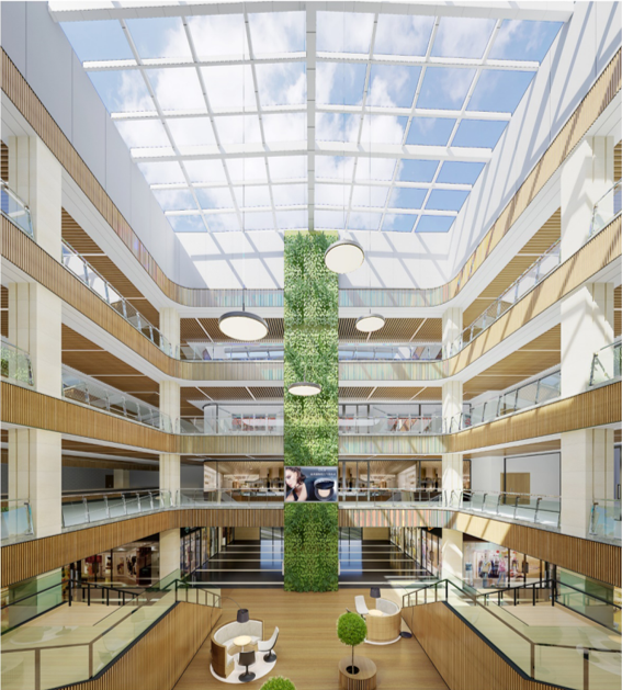 一層業(yè)態(tài)主要以生活服務(wù)為主,同時在入口處設(shè)置有接待臺和信息發(fā)布等公共務(wù)設(shè)施。