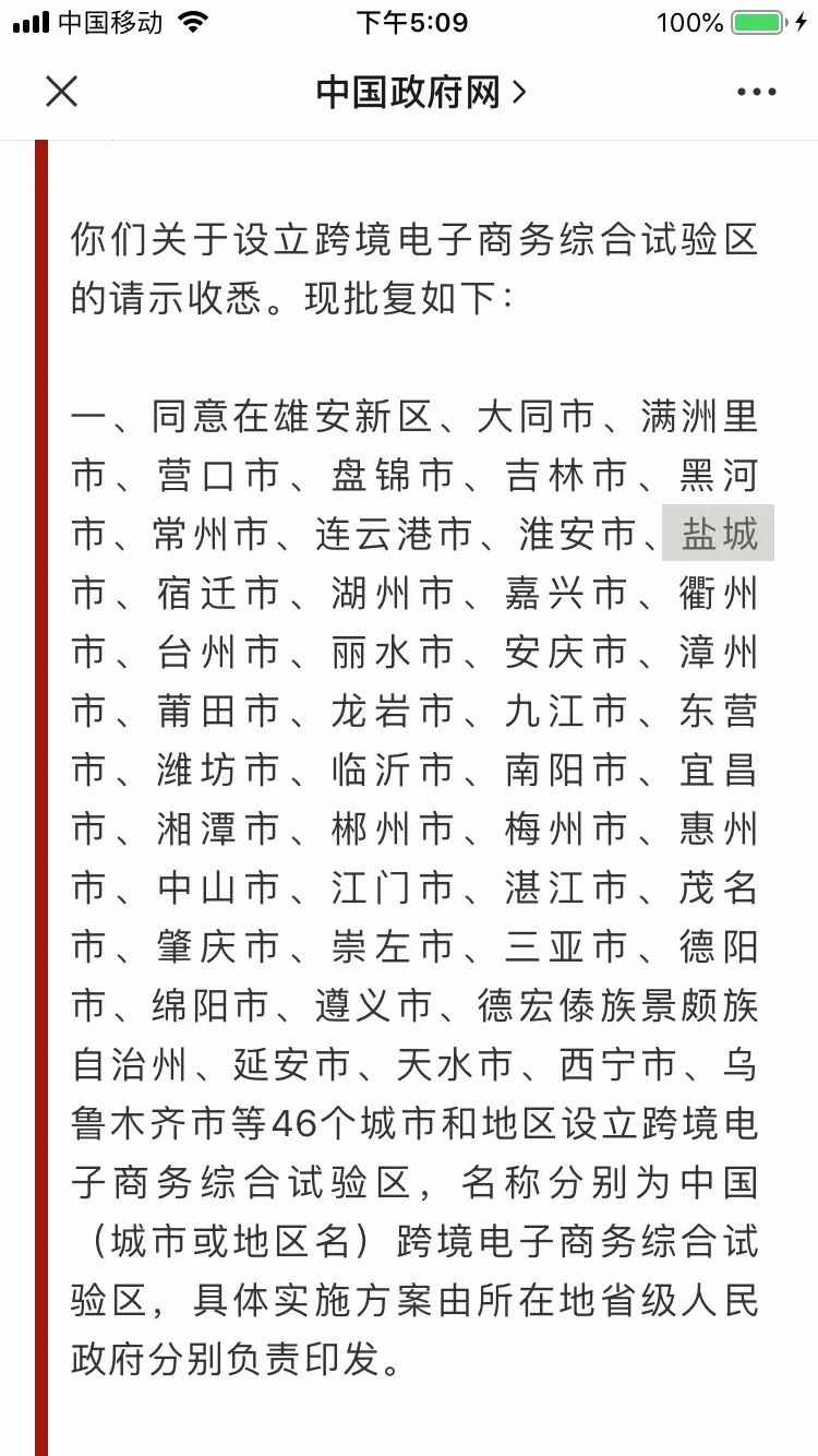 2020年4月27日國務(wù)院批復(fù)在46個城市和地區(qū)設(shè)立跨境電商綜合試驗(yàn)區(qū),鹽城在列!綜試區(qū)來了!