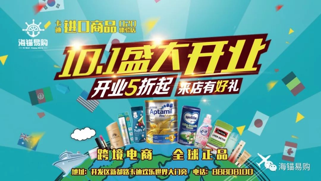 海錨易購(gòu)進(jìn)口商品卡迪體驗(yàn)店—國(guó)慶開(kāi)業(yè)三重“油”好禮!