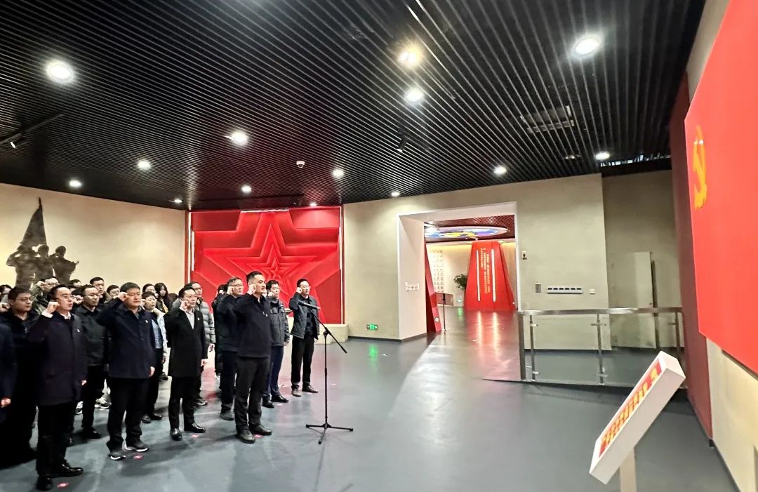 在傳承廳,面對著鮮紅的中國共產(chǎn)黨黨旗,王建旭同志帶領大家舉起右拳鄭重宣誓,鏗鏘誓言響徹大廳。大家一致表示,通過集體學習更加真切地感受到新四軍浴血奮戰(zhàn)的歷史,重溫入黨誓詞,就是要時刻銘記中國共產(chǎn)黨的革命歷史,始終牢記初心使命,深刻認識到紅色政權來之不易,深刻認識到堅持黨的領導是奪取一切勝利的最根本保證。要把捍衛(wèi)“兩個確立”作為最根本的政治遵循,學思踐悟習近平新時代中國特色社會主義思想,增強“四個意識”,堅定“四個自信”,做到“兩個維護”。深刻領悟習近平總書記關于“民心向背決定著歷史的選擇”的重要論斷,把以人民為中心的發(fā)展思想貫穿集團各項工作的全過程、各方面,在推進中國式現(xiàn)代化鹽城經(jīng)開區(qū)新實踐的征程中彰顯新?lián)敗⒄宫F(xiàn)新作為、干出新業(yè)績,切實將主題教育工作成效轉化為高質(zhì)量發(fā)展質(zhì)效,譜寫集團高質(zhì)量發(fā)展新篇章。