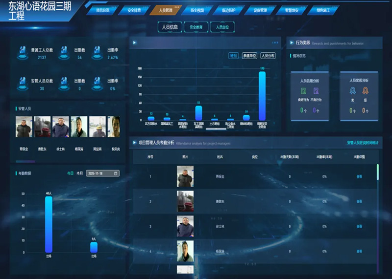 面對施工挑戰(zhàn),集團(tuán)以“文明施工”為抓手,聯(lián)動智慧工地平臺,構(gòu)建起全方位的管控體系。在綠色施工方面,通過灑水車立體噴淋、圍擋智能噴淋等10余項措施,實現(xiàn)對揚塵的實時監(jiān)控與遠(yuǎn)程管控;在安全作業(yè)方面,創(chuàng)新引入AI、傳感器技術(shù),對塔吊等特種設(shè)備實現(xiàn)智能預(yù)警,并通過人員定位、數(shù)字化安全巡查,形成24小時不間斷的隱患排查與閉環(huán)整改機制,讓“零事故”成為常態(tài)。全封閉施工、定型化防護(hù)設(shè)施的應(yīng)用,則進(jìn)一步提升了效率,筑牢了標(biāo)準(zhǔn)化的安全防線。