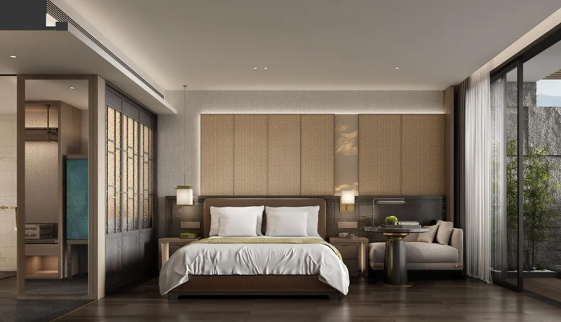 49間特色客房,間間有景,各自成趣。47㎡觀園陽(yáng)臺(tái)房推窗見(jiàn)綠,自帶浴缸私享靜謐時(shí)光;34-43㎡寵物主題房貼心設(shè)計(jì)攜寵空間,萌爪樂(lè)園讓毛孩子盡情撒歡;庭院泡池房氤氳溫暖水汽,家庭房與親子房為孩童預(yù)留歡笑空間;106㎡豪華套房更將詩(shī)意棲居推向極致。每一處細(xì)節(jié)兼顧功能與美學(xué),讓“大隱隱于市”的夢(mèng)想照進(jìn)現(xiàn)實(shí)。