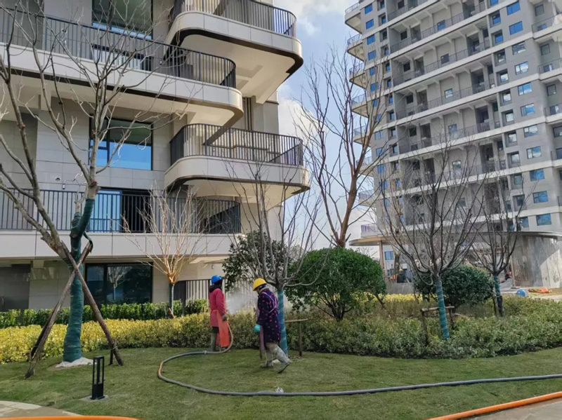 綠化工程亦全部結(jié)束,正在進(jìn)行養(yǎng)護(hù)、層次修剪,喬木、球類及地被植物多樣化的綠植搭配、高價(jià)值的喬木品種,共同勾勒出層次豐富、四季常綠的生態(tài)社區(qū)畫卷。