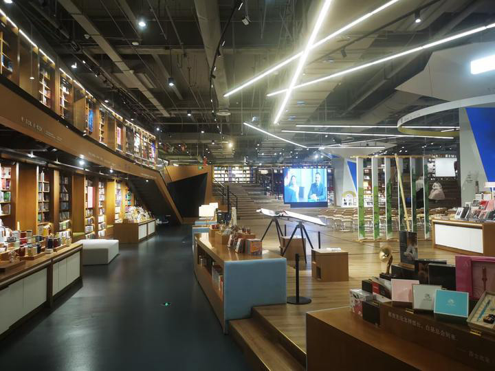 5.6米巨幕書墻讓讀者置身于鱗次櫛比的書架間,徜徉于知識海洋。藝術書區(qū)匯集國內外150多家出版社、藝術機構出版品,展陳藝術裝置“永不落幕的展覽”大書展。中心書區(qū)創(chuàng)新“閱讀+體驗”運營模式,集合自助閱讀、交流分享、文化活動等多種功能。除一層精品圖書外,二層藝術空間、三層主題餐廳還提供文創(chuàng)產品、親子閱讀、輕食餐飲等生活體驗,讓閱讀空間的內涵更加多元化。