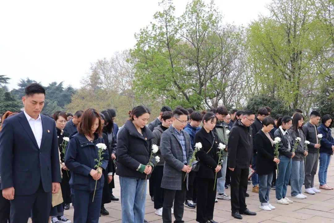 清明時(shí)節(jié),薄云淺淡,微雨初歇,雨花臺(tái)烈士陵園內(nèi)草色青青,青松翠柏環(huán)抱,為英烈殉難處和墓園遮上綠蔭。上午11時(shí),黨員職工緩步踏上層層階梯,映入眼簾的雨花臺(tái)烈士陵園顯得格外肅穆。步入紀(jì)念廣場(chǎng),兩岸青松翠,一路白花石,徐徐經(jīng)過(guò)花崗巖壁畫(huà),黃紫相間的花壇恢宏地書(shū)寫(xiě)“緬懷”二字,雨花臺(tái)烈士紀(jì)念碑矗立前方。黨員職工們走向莊嚴(yán)的烈士紀(jì)念碑,肅立于旁,手捧菊花,鞠躬默哀,敬獻(xiàn)花圈,深切緬懷革命先烈,表達(dá)對(duì)先烈的無(wú)限哀思和無(wú)盡的崇敬之情。