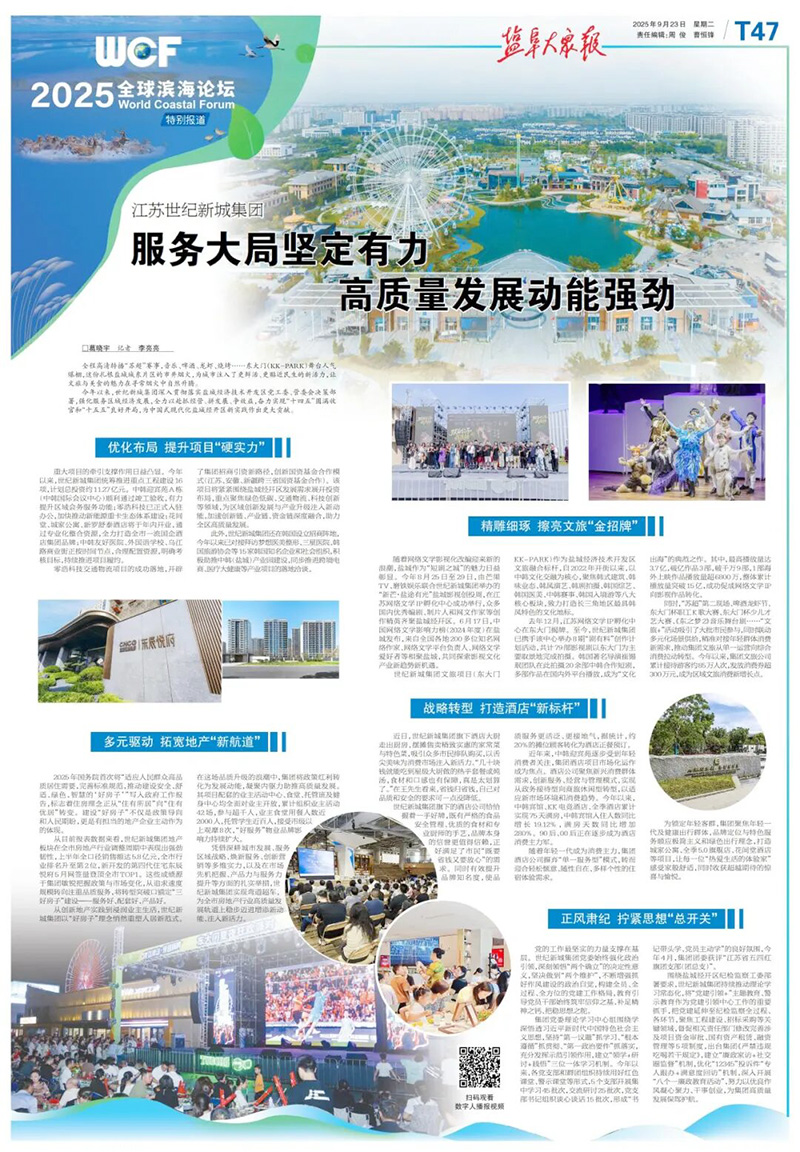 9月23日,鹽阜大眾報(bào)報(bào)業(yè)集團(tuán)刊發(fā)了《江蘇世紀(jì)新城集團(tuán):服務(wù)大局堅(jiān)定有力 高質(zhì)量發(fā)展動(dòng)能強(qiáng)勁》,專版聚焦集團(tuán)著力穩(wěn)經(jīng)營促增長,高質(zhì)量發(fā)展和效益持續(xù)提升,在持續(xù)推動(dòng)區(qū)域經(jīng)濟(jì)發(fā)展中挑起大梁。