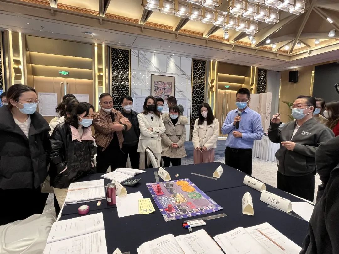 培訓(xùn)過程中,學(xué)員被分為6組,每組模擬經(jīng)營一家公司,學(xué)員作為公司經(jīng)營者,需要制定經(jīng)營與投資策略,擴大周期生產(chǎn)規(guī)模,爭取更高的市場份額。學(xué)員們根據(jù)模擬設(shè)定的市場環(huán)境,全面思考、認(rèn)真分析、各出奇招、搶占份額,開啟了“你爭我奪”的沙盤推演之路。模擬經(jīng)營共進(jìn)行了7輪,6家公司在面對相同的市場環(huán)境時采取了不同的經(jīng)營策略,有激進(jìn)、有保守,最終經(jīng)營狀況也大相徑庭,有的企業(yè)資產(chǎn)及規(guī)模呈倍增長,有的企業(yè)資不抵債面臨破產(chǎn),可謂“幾家歡喜幾家愁”。每輪結(jié)束后的復(fù)盤,更是讓學(xué)員們明白作為一名企業(yè)經(jīng)營者決策的重要性。